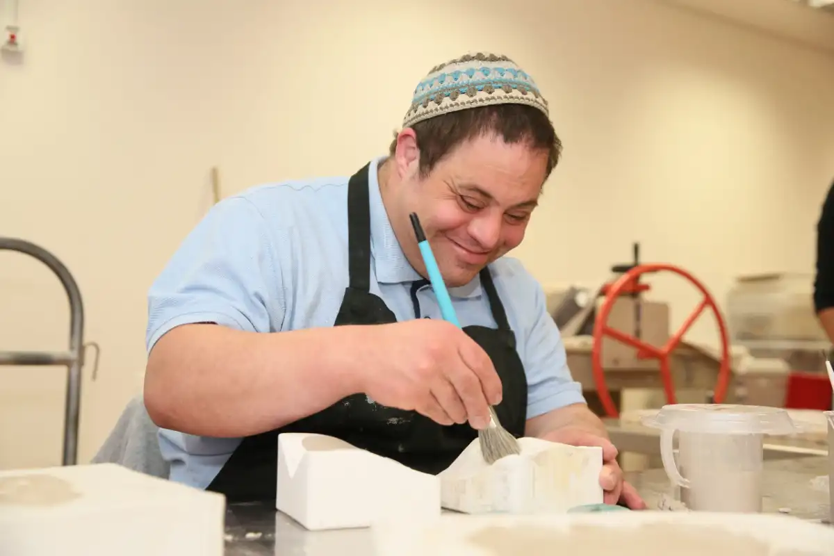 Shalva’s creative workshop provides adults with disabilities who have lower levels of independence with gainful employment and training in various arts and crafts. A staff of professional artists and therapists work together to teach various creative techniques and support the rehabilitative and personal development of the employees. The crafts are designed with Shalva themes and inspirational messages, and include ceramics, jewelry, wood crafts, sublimation printing, decorative soaps, and herbal tea arrangements.